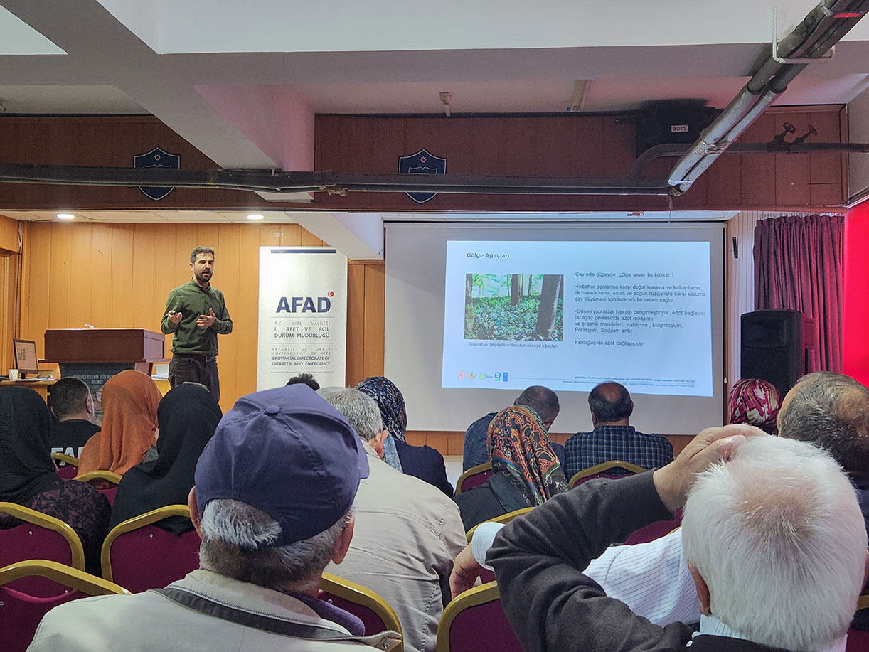 As part of the "Landslide Awareness Conference" organized by Salarha Şehit Nedim Çalık Secondary School on May 7, 2025, Soner Oruç, Field Officer of the EBSLM Project, gave a presentation titled "Landslide and Erosion Measures in Tea Plantations." Oruç provided information about the EBSLM Project and Sustainable Land Management (SAY) approaches.